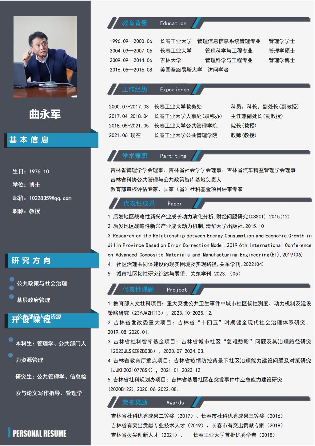 曲永军教授