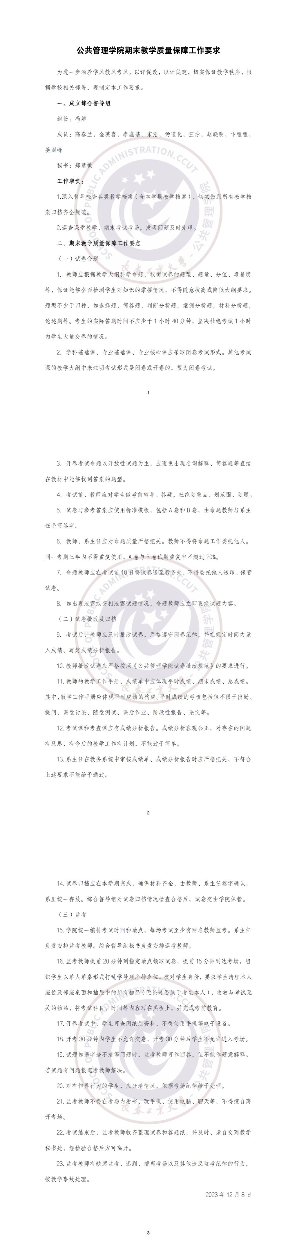 公共管理学院期末教学质量保障工作要求