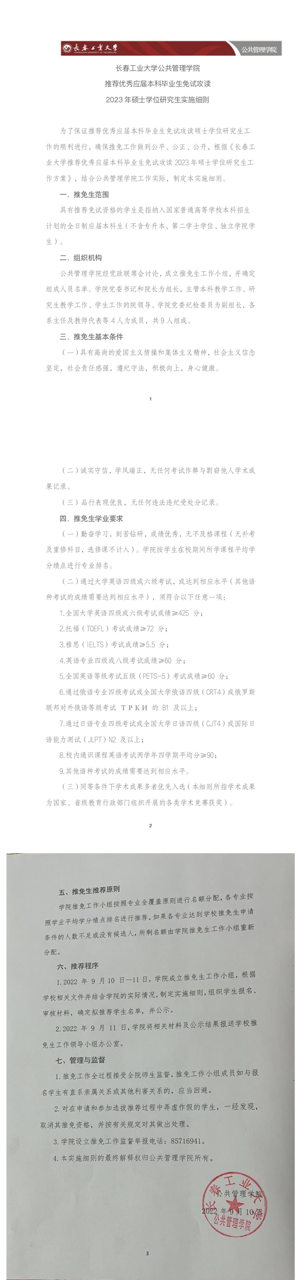 公共管理学院推免工作实施细则